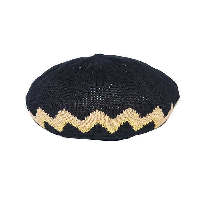 ジグザグ模様がジャガード織りされたコットン素材のニットタム。