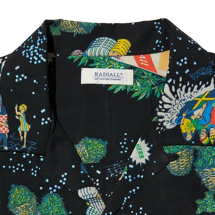 サラッとした気心地の心地よい40レーヨンに、オリジナル柄を手捺染プリントしたアロハシャツです。