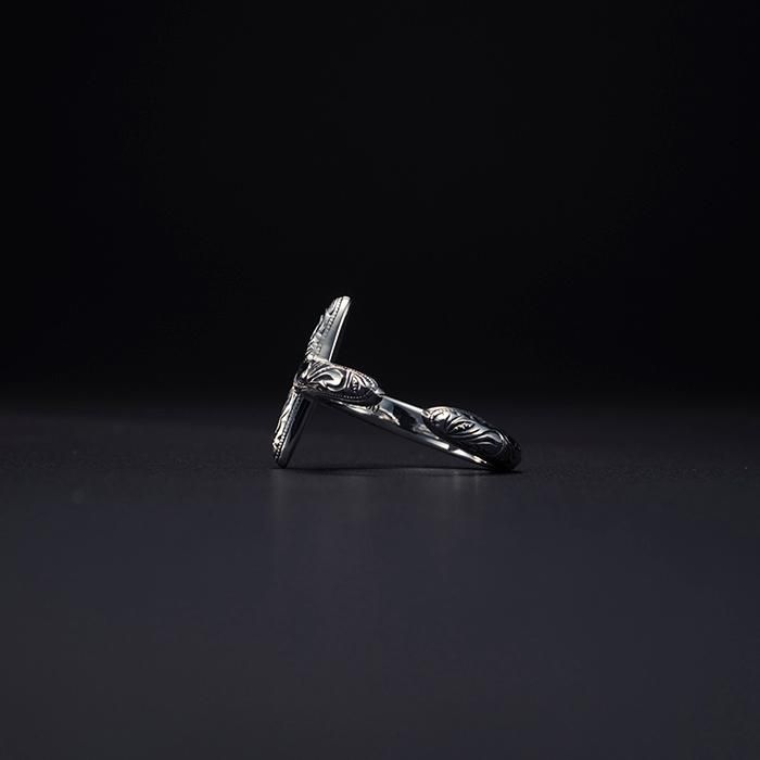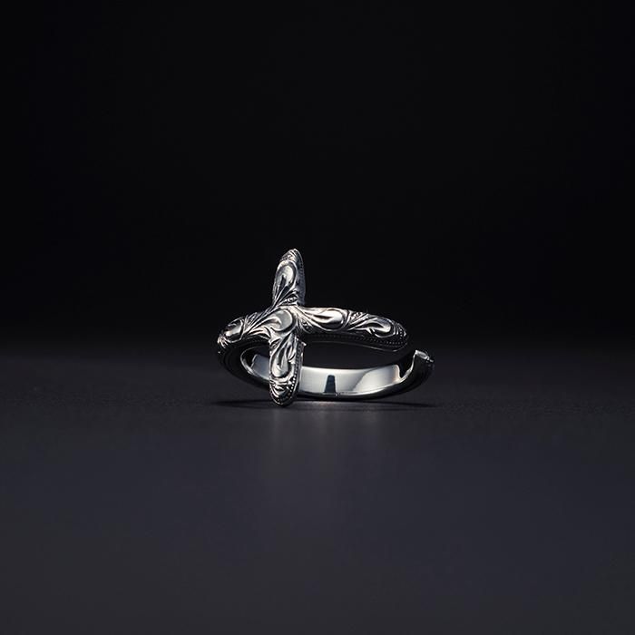 オーナメント柄の彫金を施したクロスを円状にしたリング。