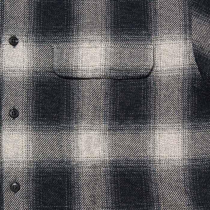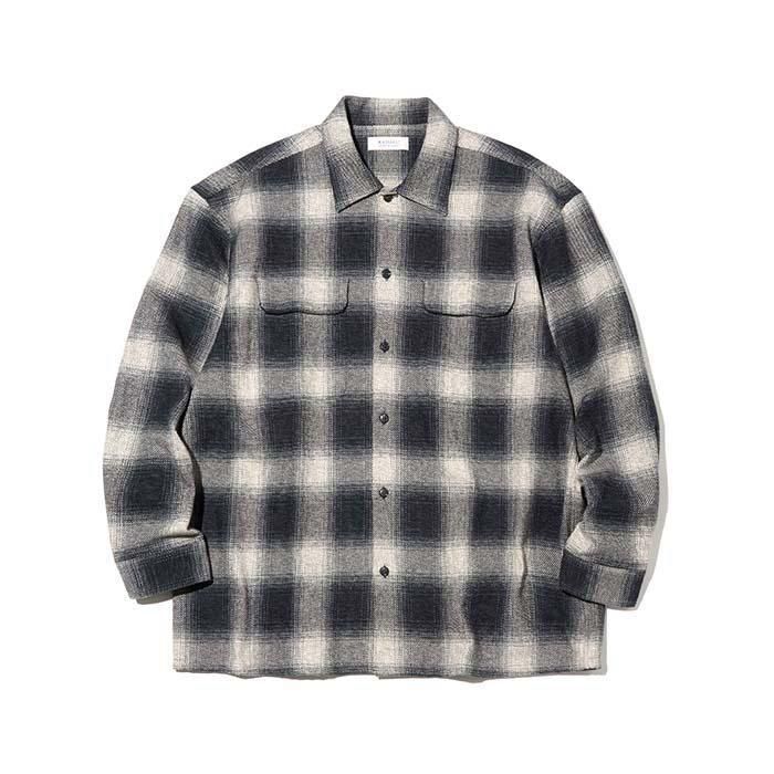 柔らかく、ほどよい生地厚のコットンツイードのオンブレオープンカラーシャツ。