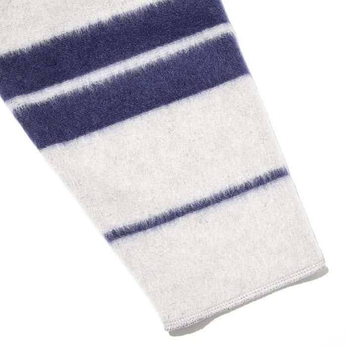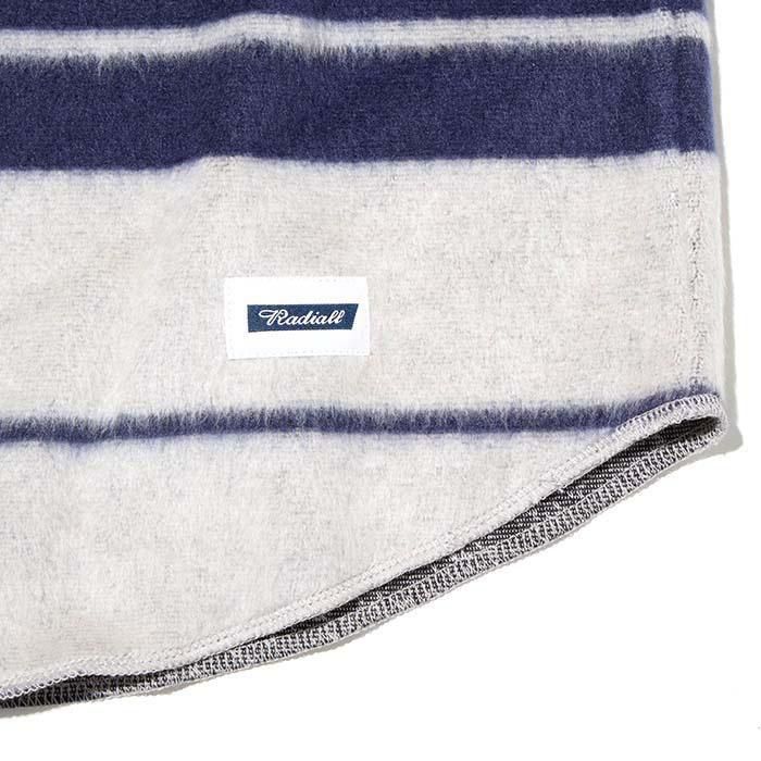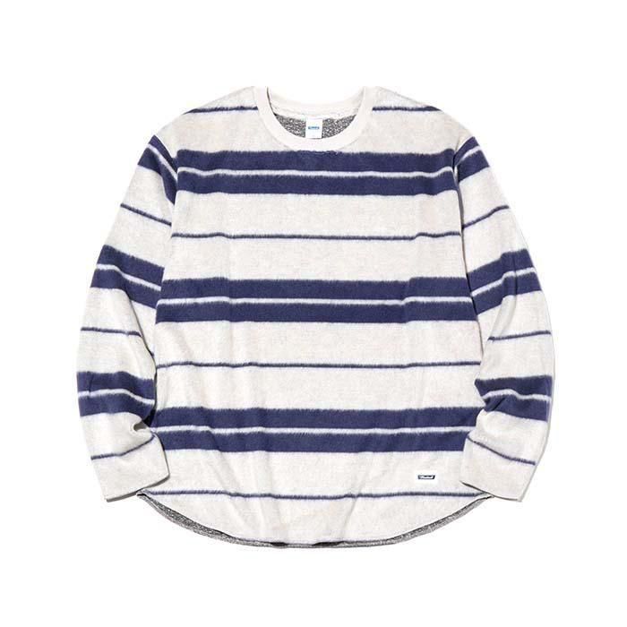 毛足の長いシャギー生地のクルーネックロングスリーブTシャツ。